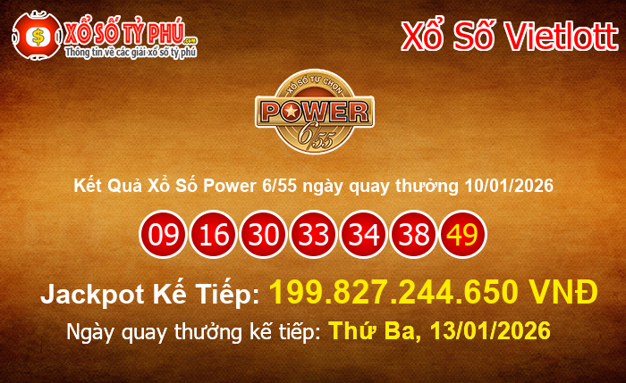 Kết Quả Xổ Số Power 6/55 Ngày 10/01/2026: Jackpot Tiếp Tục Tăng Lên Mốc 199.827.244.650 VNĐ