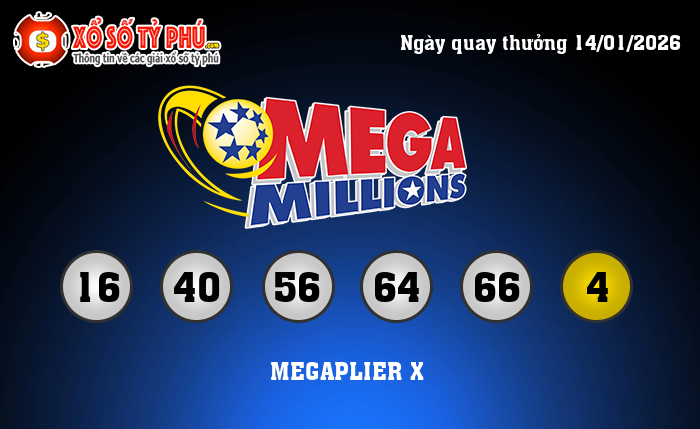 Kết quả xổ số Mega Millions ngày quay thưởng 14/01/2026 (Tính theo giờ Việt Nam) vẫn chưa tìm ra chủ nhân may mắn nhất trúng...