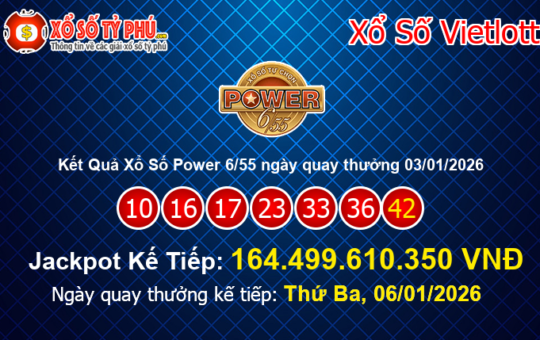 Kết quả xổ số Power 6/55 của Vietlott ngày 03/01/2026 (Kỳ quay thưởng #01290) vẫn chưa tìm ra chủ nhân...