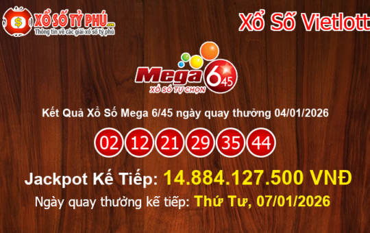 Kết quả xổ số Mega 6/45 của Vietlott ngày 04/01/2026 (Kỳ quay thưởng #01454) vẫn chưa tìm ra chủ nhân...