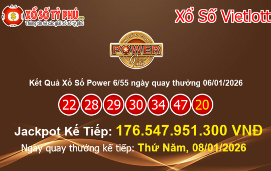 Kết quả xổ số Power 6/55 của Vietlott ngày 06/01/2026 (Kỳ quay thưởng #01291) vẫn chưa tìm ra chủ nhân...