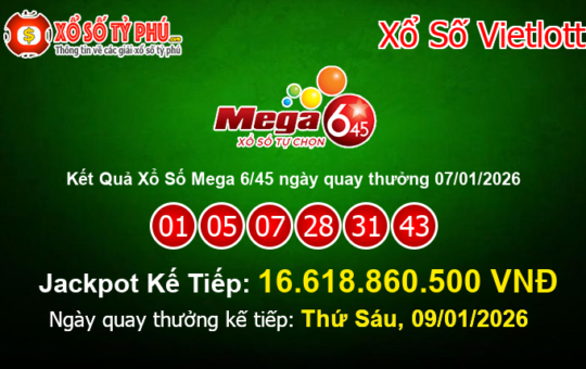 Kết Quả Xổ Số Mega 6/45 Ngày 07/01/2026: Jackpot Tiếp Tục Tăng Lên Mốc 16.618.860.500 VNĐ