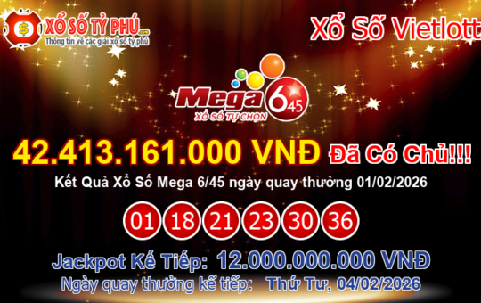 Giải thưởng xổ số Mega 6/45 của Vietlott với giá trị Jackpot trị giá 42.413.161.000 VNĐ tương đương hơn 1.8...