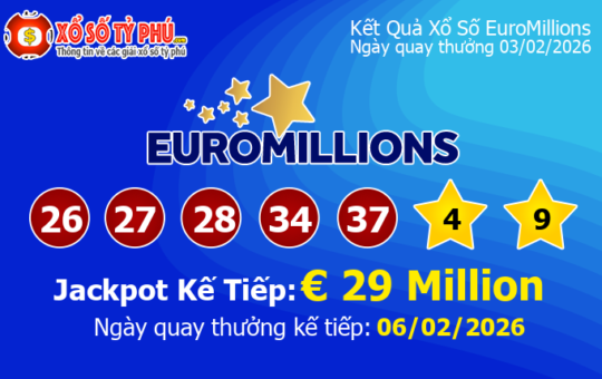 Kết quả xổ số EuroMillions ngày quay thưởng 03/02/2026 (Tính theo giờ Việt Nam) vẫn chưa tìm ra chủ nhân...