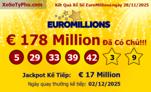 Kết quả xổ số EuroMillions ngày quay thưởng 14/04/2023 (Tính theo giờ Việt Nam) vẫn chưa tìm ra chủ nhân may mắn nhất trúng giải Jackpot. Giá trị Jackpot của xổ số EuroMillions tiếp tục tăng lên mốc €86 Triệu EURO tương đương hơn 2364.3 Tỷ VNĐ.