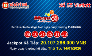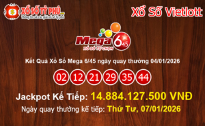 Kết quả xổ số Mega 6/45 của Vietlott ngày 09/01/2026 (Kỳ quay thưởng #01456) vẫn chưa tìm ra chủ nhân may mắn nhất trúng giải Jackpot. Giá trị Jackpot của xổ số Mega 6/45 tiếp tục tăng lên mốc 18.117.407.500 VNĐ tương đương hơn 770.95 Ngàn Đô-la Mỹ.