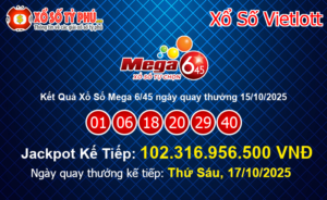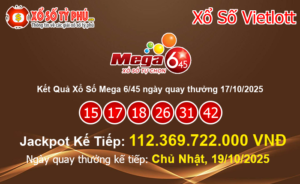 Kết quả xổ số Mega 6/45 của Vietlott ngày 19/10/2025 (Kỳ quay thưởng #01421) vẫn chưa tìm ra chủ nhân may mắn nhất trúng giải Jackpot. Giá trị Jackpot của xổ số Mega 6/45 tiếp tục tăng lên mốc 122.200.134.500 VNĐ tương đương hơn 5.2 Triệu Đô-la Mỹ.