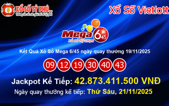 Kết quả xổ số Mega 6/45 của Vietlott ngày 19/11/2025 (Kỳ quay thưởng #01434) vẫn chưa tìm ra chủ nhân...
