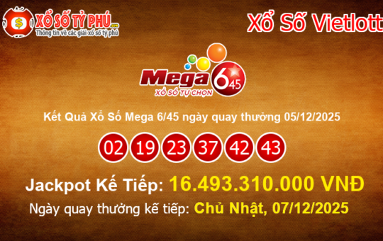 Kết Quả Xổ Số Mega 6/45 Ngày 05/12/2025: Jackpot Tiếp Tục Tăng Lên Mốc 16.493.310.000 VNĐ