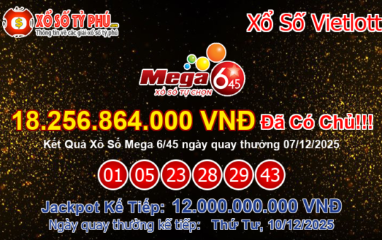 Giải thưởng xổ số Mega 6/45 của Vietlott với giá trị Jackpot trị giá 18.256.864.000 VNĐ tương đương hơn 776.89...