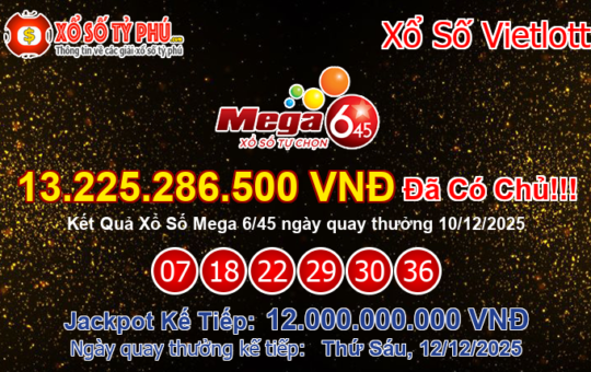 Giải thưởng xổ số Mega 6/45 của Vietlott với giá trị Jackpot trị giá 13.225.286.500 VNĐ tương đương hơn 562.78...