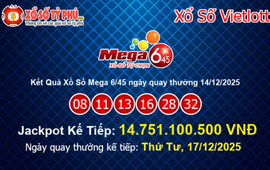 Kết Quả Xổ Số Mega 6/45 Ngày 14/12/2025: Jackpot Tiếp Tục Tăng Lên Mốc 14.751.100.500 VNĐ