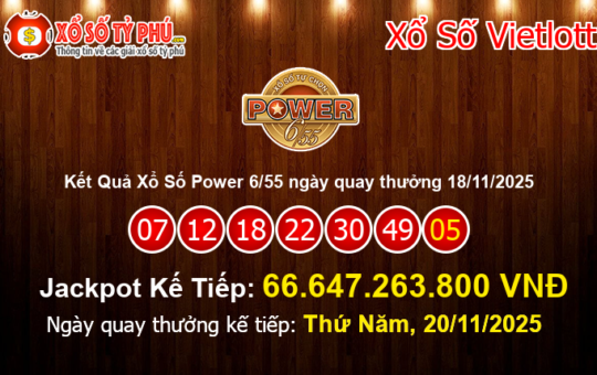 Kết quả xổ số Power 6/55 của Vietlott ngày 18/11/2025 (Kỳ quay thưởng #01270) vẫn chưa tìm ra chủ nhân...