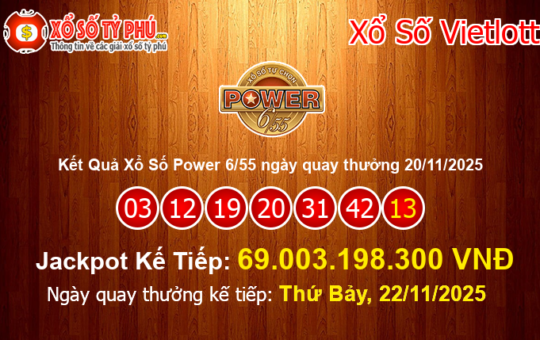 Kết quả xổ số Power 6/55 của Vietlott ngày 20/11/2025 (Kỳ quay thưởng #01271) vẫn chưa tìm ra chủ nhân...