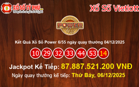 Kết Quả Xổ Số Power 6/55 Ngày 04/12/2025: Jackpot Tiếp Tục Tăng Lên Mốc 87.887.521.200 VNĐ