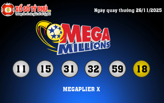 Kết quả xổ số Mega Millions ngày quay thưởng 26/11/2025 (Tính theo giờ Việt Nam) vẫn chưa tìm ra chủ...