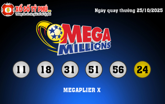 Kết quả xổ số Mega Millions ngày quay thưởng 25/10/2025 (Tính theo giờ Việt Nam) vẫn chưa tìm ra chủ...
