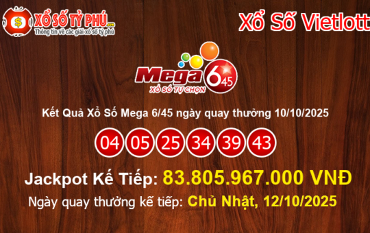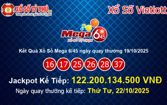 Kết Quả Xổ Số Mega 6/45 Ngày 19/10/2025: Jackpot Tiếp Tục Tăng Lên Mốc 122.200.134.500 VNĐ