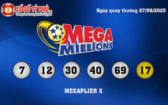 Kết quả xổ số Mega Millions ngày quay thưởng 27/08/2025 (Tính theo giờ Việt Nam) vẫn chưa tìm ra chủ...