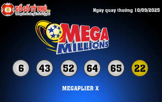 Kết quả xổ số Mega Millions ngày quay thưởng 10/09/2025 (Tính theo giờ Việt Nam) vẫn chưa tìm ra chủ...